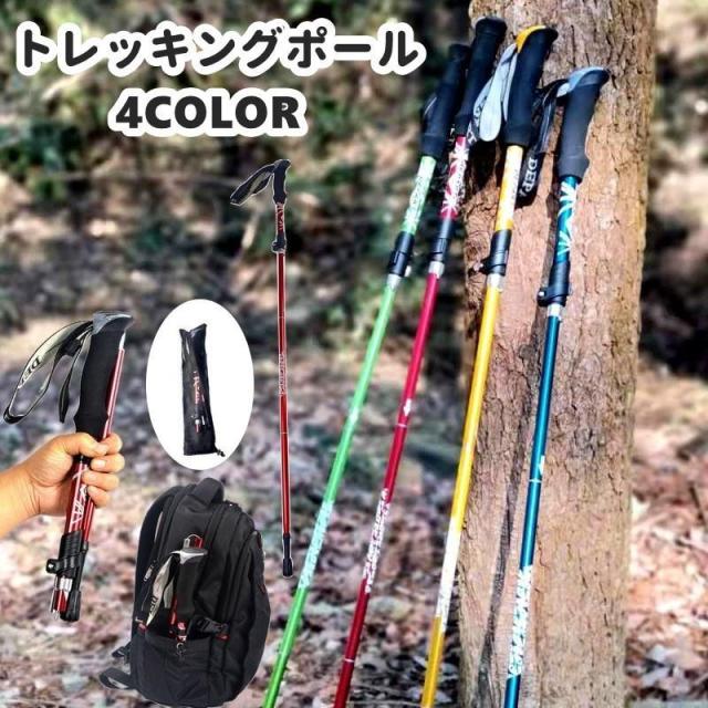 トレッキングポール 登山ストック 収納袋付き 単品 アウトドア 登山用品 I型グリップ 伸縮式 折りたたみ コンパクト 山登り 杖 ステッキ ハイキン