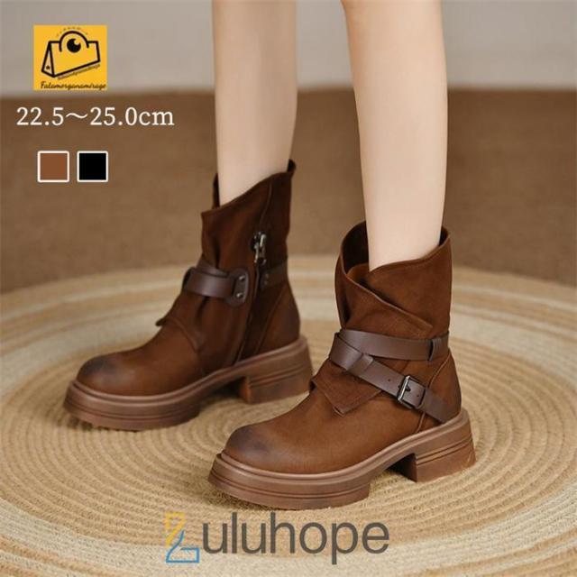 ブーツ レディース ベルト 防滑 太ヒール ハーフ丈 黒 疲れない 秋冬 楽 ローヒール4cm 太 ヒール 甲高 幅広 ワイド ゴールド 歩きやすい履きやすい