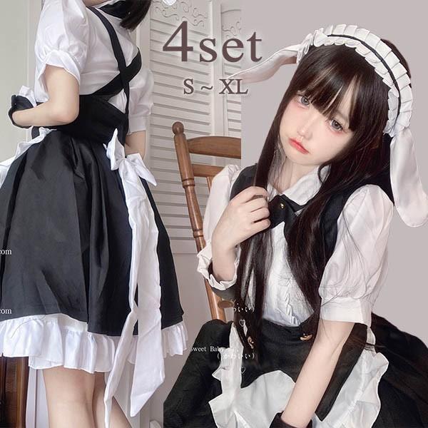 うさ耳 メイド服 バニー 可愛い コスプレ衣装 4点セット 女性 仮装 衣装 ゴスロリ 学園祭 文化祭