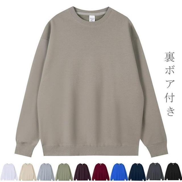 トレーナー 裏起毛 裏ボア トップス 秋服 秋物 クルーネック 無地 メンズ レディース ファッション 秋冬