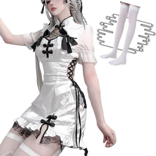 チャイナ服 コスプレ チャイナドレス セクシー レディース ワンピース ドレス 白い コスチューム かわいい ゴスロリ 中華 チャイナ風 仮装 プレゼント