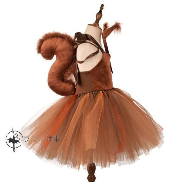 ハロウィンコスプレ衣装子供衣装動物返信リスコスプレワンピース ハロウイン 仮装 チュチュ カチューシャとお尻付き Halloween仮装変装舞台衣装 イベントコスプ