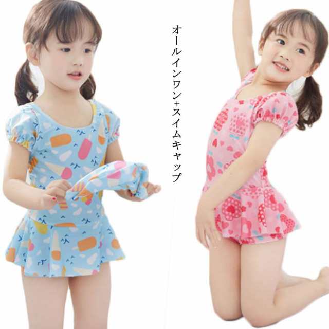 水着 子供 女の子 ワンピース 超可愛い キッズ 2点セット ベビー 子供水着 キッズ水着 女の子水着 子ども 子ども水着 ワンピース スイムキャップ かわいい 女児 みずぎ 送料無料