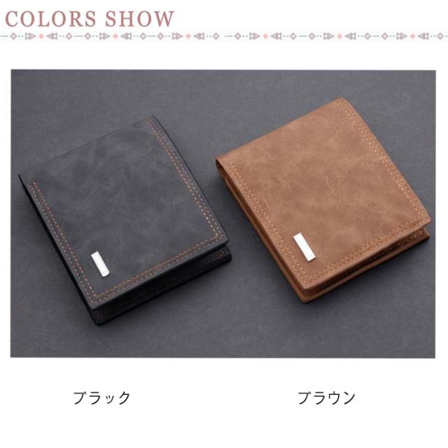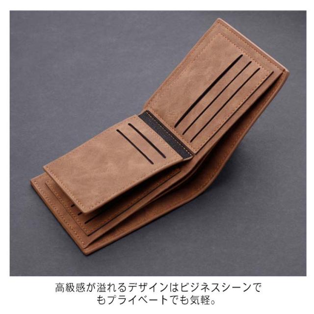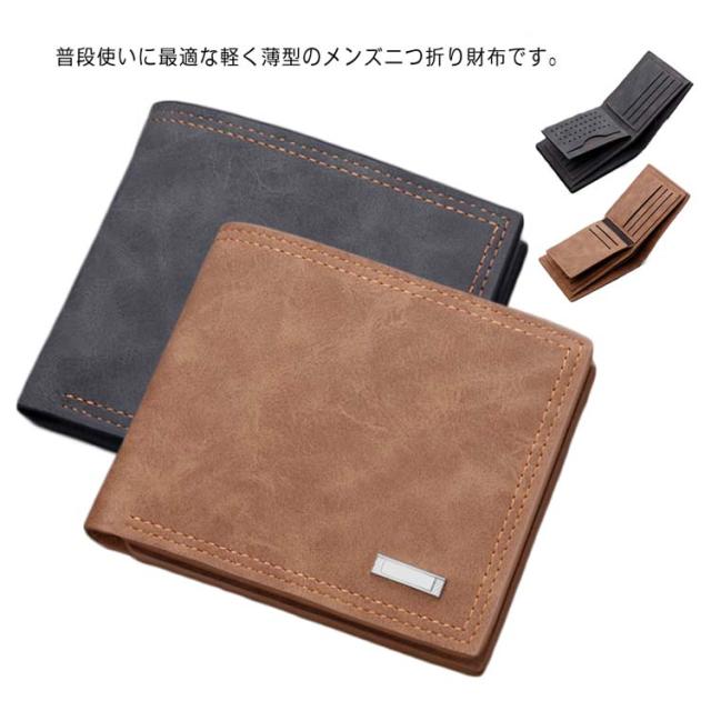 メンズ 財布 二つ折り財布 PUレザー 2つ折り カード入れ ウォレット 小銭入れ 大容量 シンプル ビジネス 紳士 男性 マット感 つや消し 父の日 プレゼント ギフト 送料無料