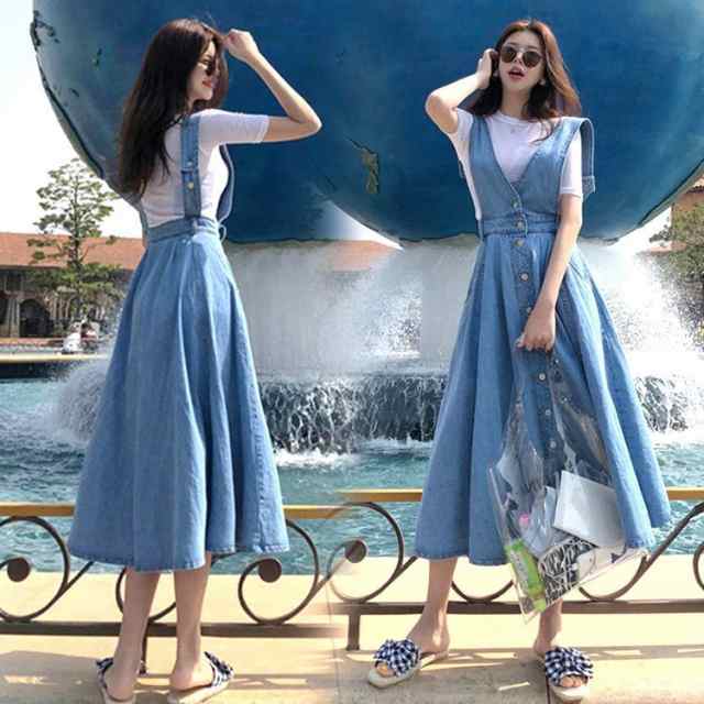 ワンピース レディース 40代 キレイめ マキシワンピース 春夏 デニムワンピース vネック サロペットフレアスカートひざ下 オシャレゆったり 30代