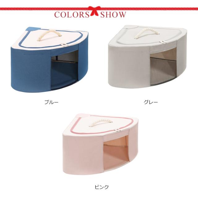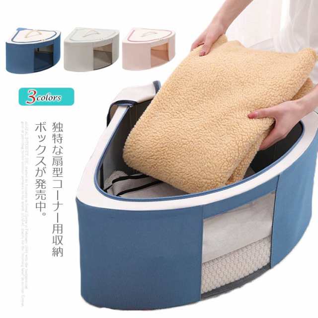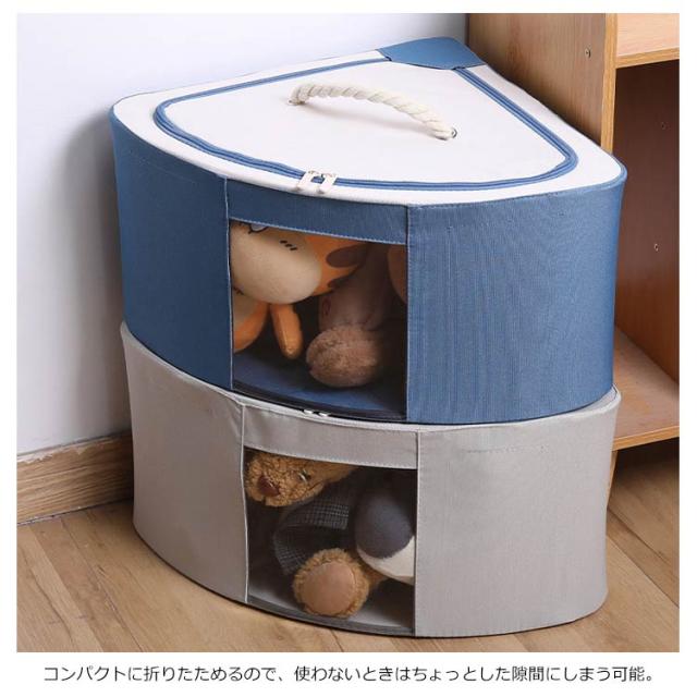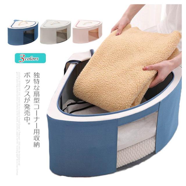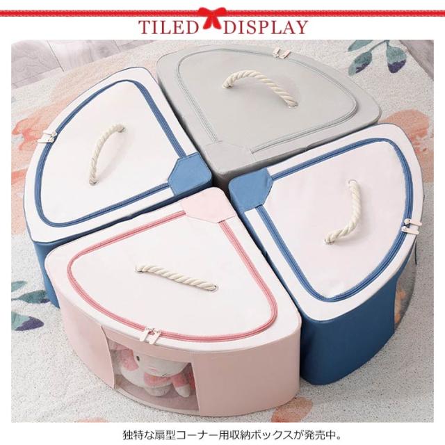 | 独特な扇型コーナー用収納ボックスが発売中。 蓋のまわりにファスナーが付いていて開けやすく、程よい固さで形が崩れなくていいです。 中身が見える窓付きなので、たくさん収納しても中に何が入っているのか一目で分かります。 取っ手を付けることで、持ち運びもラクラク。 お部屋が片付いて、気持ちもスッキリ。 コンパクトに折りたためるので、使わないときはちょっとした隙間にしまう可能。 | |