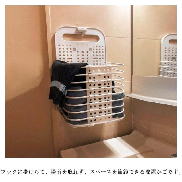 | シンプルなデザインで、日常生活用品を収納できるバスケット。 壁や洗濯機に簡単に設置でき、穴あけやネジが不要です。 フックに掛けらて、場所を取れず、スペースを節約できる洗濯かごです。 使わないときは簡単に折りたたんで収納できるので、省スペースになります。 取っ手がついていて、持ち運びやすいのも便利です。移動しても使いやすいです。 | |