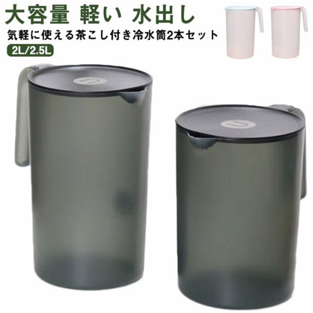 冷水筒 2リットル 2.5リットル ピッチャー 水差し 水さし 麦茶ポット 冷水ポット 大容量 麦茶 水 シンプル おしゃれ 2本セット 広口 洗いやすい 家庭用 業務用 会社 持ちやすい プラスチック クリア 軽い 水出し ギフト プレゼント 送料無料