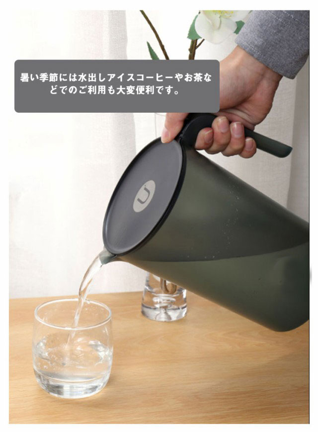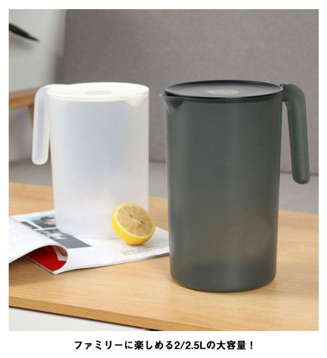 | 気軽に使える茶こし付き冷水筒2本セット 食卓で邪魔にならないシンプルでおしゃれなデザインです。 軽くて割れにくいため、気軽に普段使いしやすいのもうれしいアイテムです。 ファミリーに楽しめる2/2.5Lの大容量! シンプル構造でパーツが少なく、広口で奥まで手が入るので、お手入れ簡単にもうれしいポイント。 暑い季節には水出しアイスコーヒーやお茶などでのご利用も大変便利です。 | |