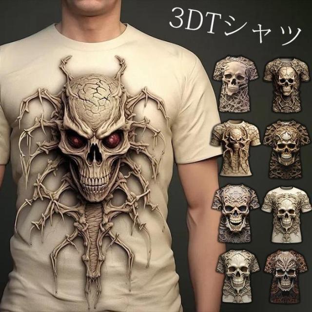 おもしろTシャツ 3D Tシャツ 髑髏 ドクロ 半袖 メンズ スカル インパクト