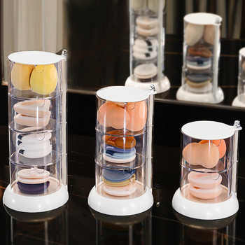 収納トレイ 2段3段4段回転収納ボックス 透明 化粧コットンケース アクセサリー収納ボックス ホワイトお洒落 パフ置き多段円柱形小物入れ 指輪ピアス収納卓上 メイク道具ボックス