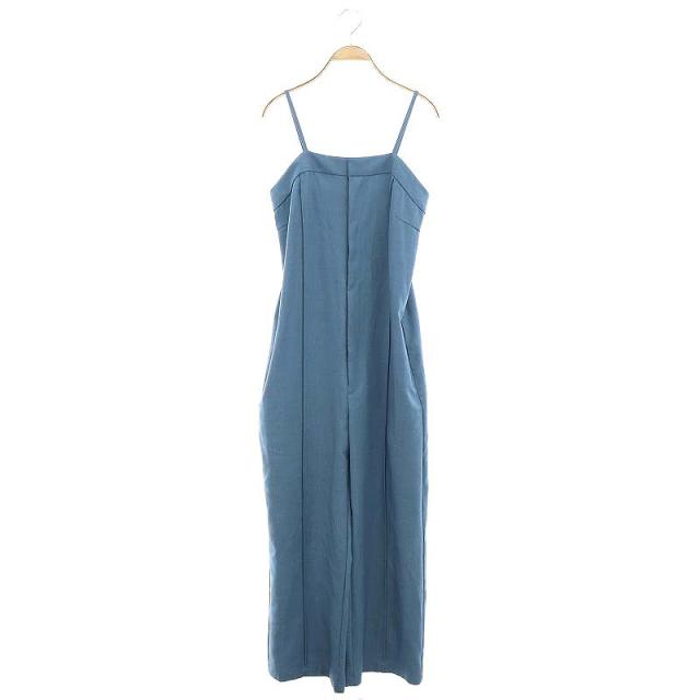 【中古】リュミエ Lumier センターピンタック オールインワン サロペット ワイドパンツ M ライトブルー