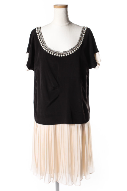 【中古】ダイアグラム グレースコンチネンタル パール装飾 プリーツ 切替 ワンピース ひざ丈 半袖 36 黒