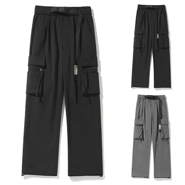 カーゴパンツ ワイドパンツ メンズ パンツ 春 夏 ズボン ゆったり 日常 無地 スラックス ウエストゴム 機能性 撥水加工 サイドポケット付き ルーズシルエット ワークパンツ ボトムス ロングパンツ パンツメンズ チノパン ストレートパンツ