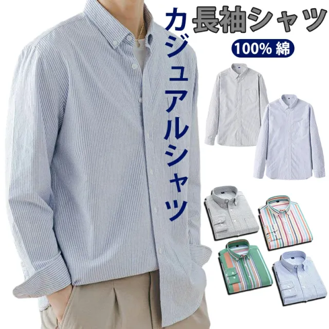 ストライプシャツ メンズ 長袖 シャツ 綿100 春 秋 おしゃれ かっこいい メンズファッション 20代 30代 40代 50代 カジュアル 服 人気