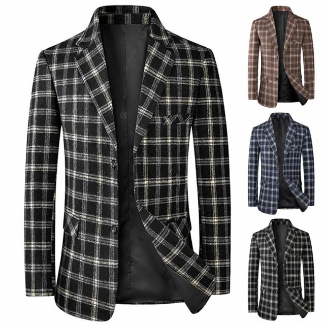 テーラードジャケット メンズ カジュアル チェック柄 大きいサイズ サマージャケット 春秋 2ボタン テーラードジャケット 通勤 ビジネス ポリエステル