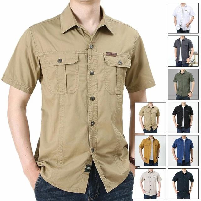 ミリタリーシャツ メンズ 半袖シャツ 綿 半袖 ワークシャツ 無地シャツ カジュアルシャツ トップス 夏服 仕事着 ワークウェア 全9色 アウトドア コットンシャツ 胸ポケット 旅行 釣り 登山 通勤 夏 サマー お兄系