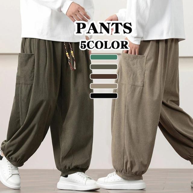 コーデュロイ パンツ メンズ ワイドパンツ イージーパンツ ボトムス コーデュロイ ズボン ゆったり 太め パンツ メンズズボン サルエルパンツ 無地 おしゃれ 大きいサイズ 秋服 春服 秋 冬 メンズファッション