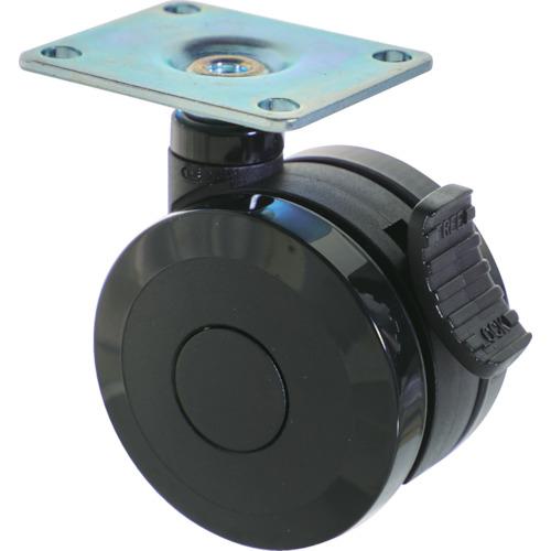 ■TRUSCO プレート式双輪キャスター エラストマ-車輪 自在ストッパー付 Φ75 ブラック〔品番:TPWES75BK〕【2573508:0】[店頭受取不可]