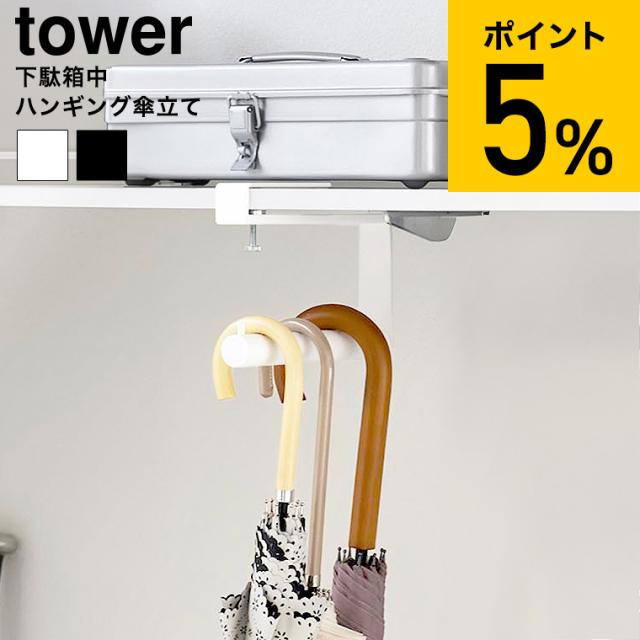 山崎実業 tower 下駄箱中ハンギング傘立て タワー 公式 10080 10081 ホワイト ブラック / 隙間収納 コンパクト 玄関収納 靴箱 シューズクローク 長傘 折り畳み傘 レインコート リュック yamazaki JGS