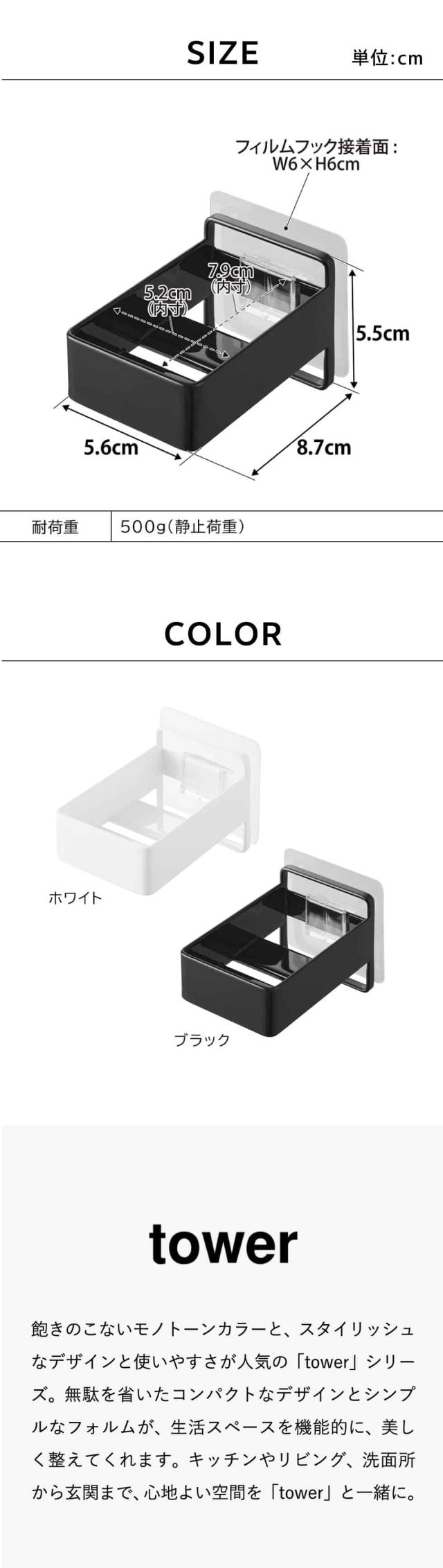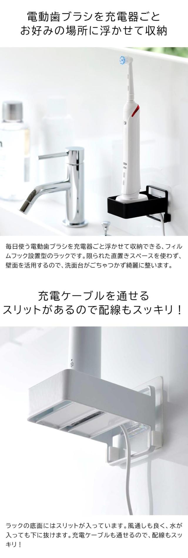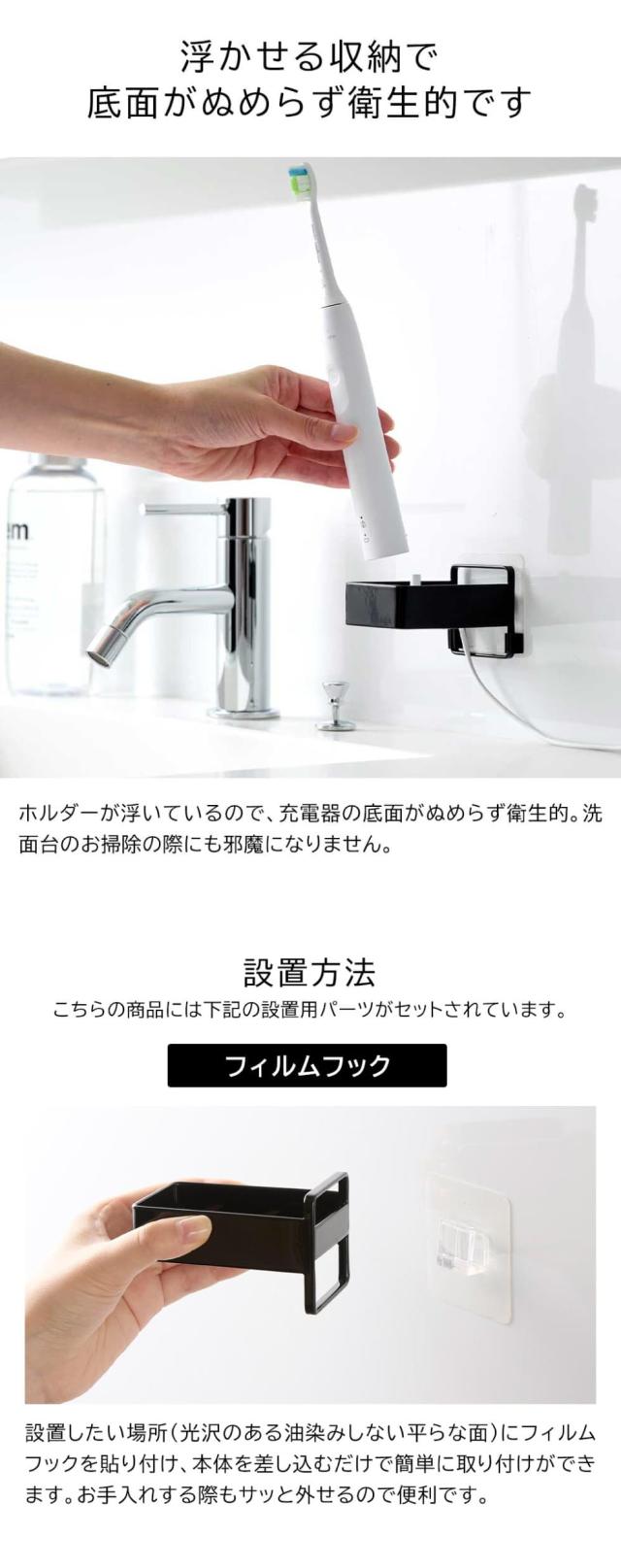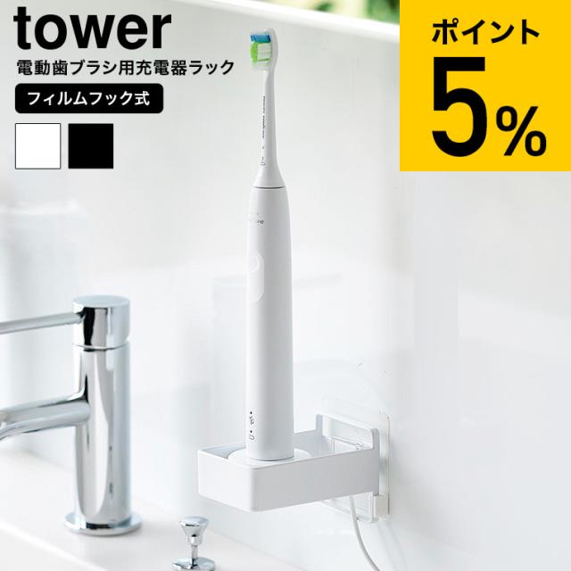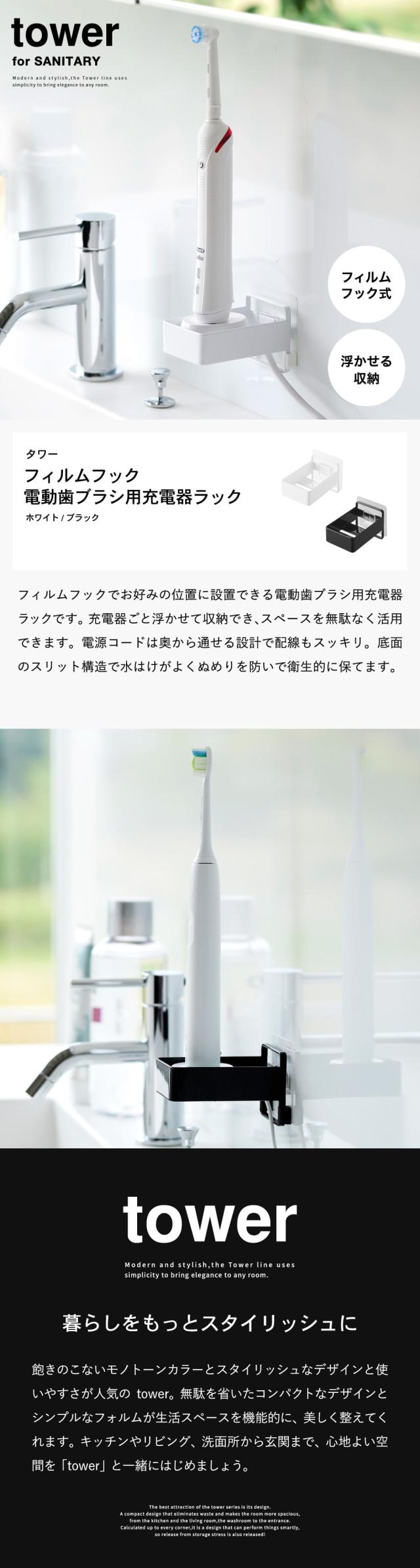 山崎実業 tower フィルムフック電動歯ブラシ用充電器ラック タワー 公式 ホワイト ブラック 10225 10226 / 電動歯ブラシ置き 電動歯ブラシ立て 洗面所 浮かせる収納 壁面収納 yamazaki タワーシリーズ JGS