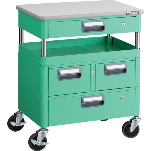TRUSCO ツールワゴン フェニックスワゴン 抗菌 省音 600X400XH740 引出 天板付 ヤンググリーン〔品番:PEW-761VZWT-YG〕[注番:4857534]