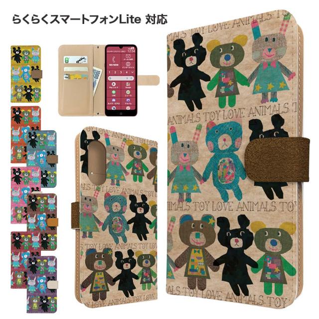らくらくスマートフォンLite ケース 手帳型 FCG03 mr01 スマホケース カバー アニマル くま スマホカバー 携帯カバー らくらくホンライト らくらくホンlite ケース うさぎ 動物