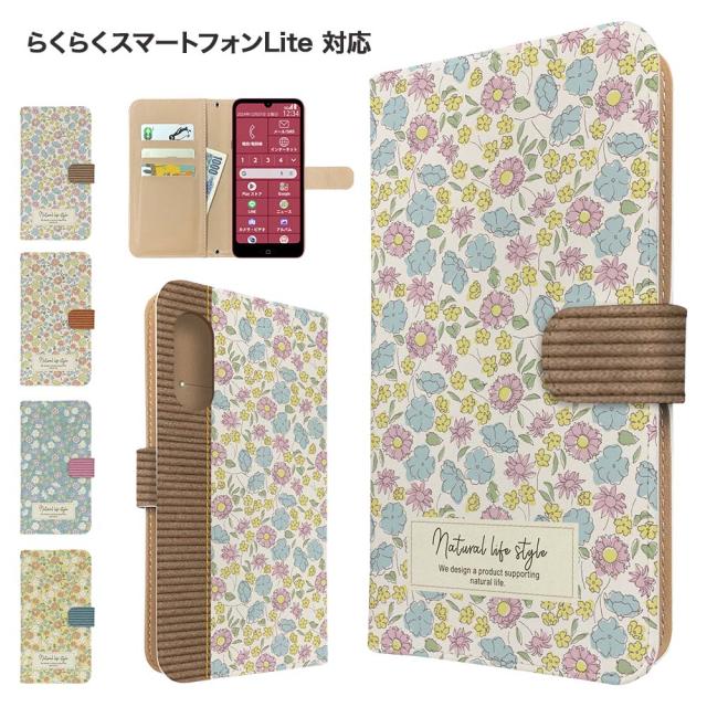 らくらくスマートフォンLite ケース 手帳型 FCG03 mr01 スマホケース カバー 花柄 フラワー スマホカバー 携帯カバー らくらくホンライト らくらくホンlite ケース 小花柄