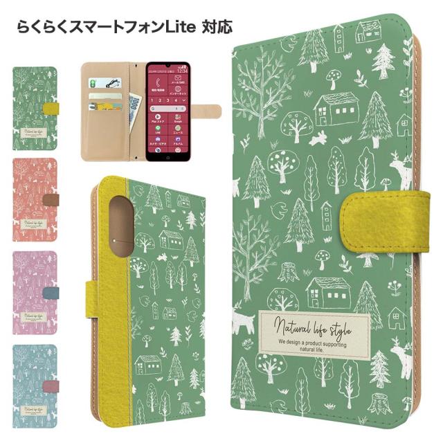 らくらくスマートフォンLite ケース 手帳型 FCG03 mr01 スマホケース カバー 北欧 アニマル スマホカバー 携帯カバー らくらくホンライト らくらくホンlite ケース フォレスト