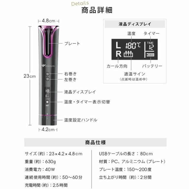 自動コードレスカーラー ゆるふわ コードレス 自動巻き カールアイロン ヘアアイロン オートカール ヘアアレンジ