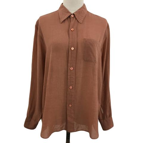 【中古】マイ MY_ シャツ スタンダード 無地 長袖 0 茶 ブラウン レディース