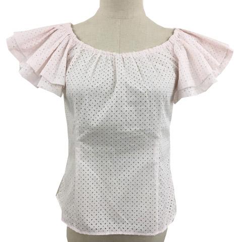 【中古】未使用品 スナイデル ブラウス ラウンドネック ナイロン カットワークレース フリル 透け感 半袖 F ピンク