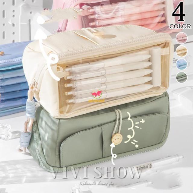 筆箱 ペンケース 大容量 仕切り おしゃれ シンプル 高校 中学 小学校 女子 男子 使いやすい 無地 両面 チャック