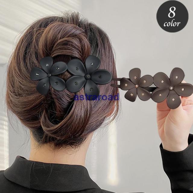ヘアクリップ サイドバンスクリップ レディース ヘアアクセサリー フラワー 花 ラインストーン 単色 髪留め 髪飾り まとめ髪 ヘアアレンジ おしゃれ
