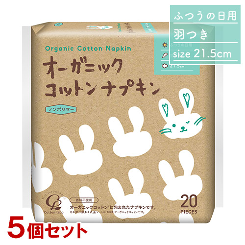 オーガニックコットンナプキン ふつうの日用 羽つき21.5cm 20個入り×5個セット 軽い日 小さめサイズ コットン・ラボ(Cotton labo)【送料込(北海道除く)】