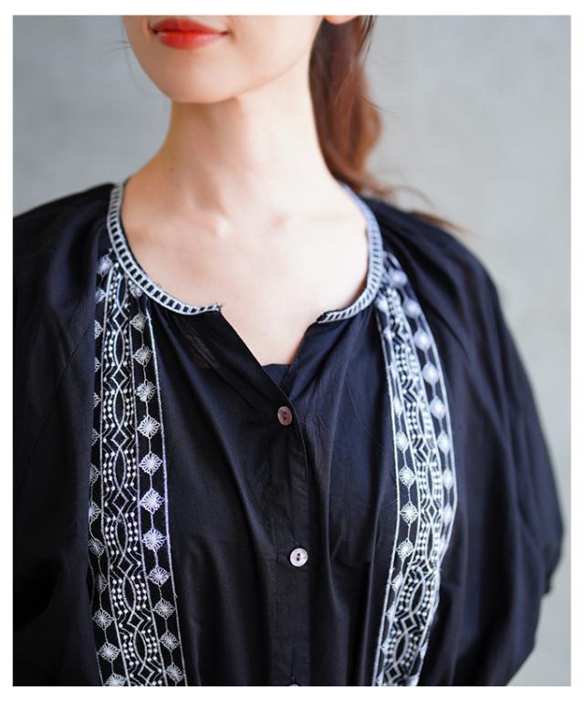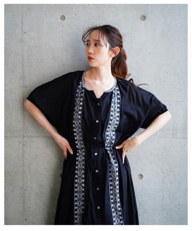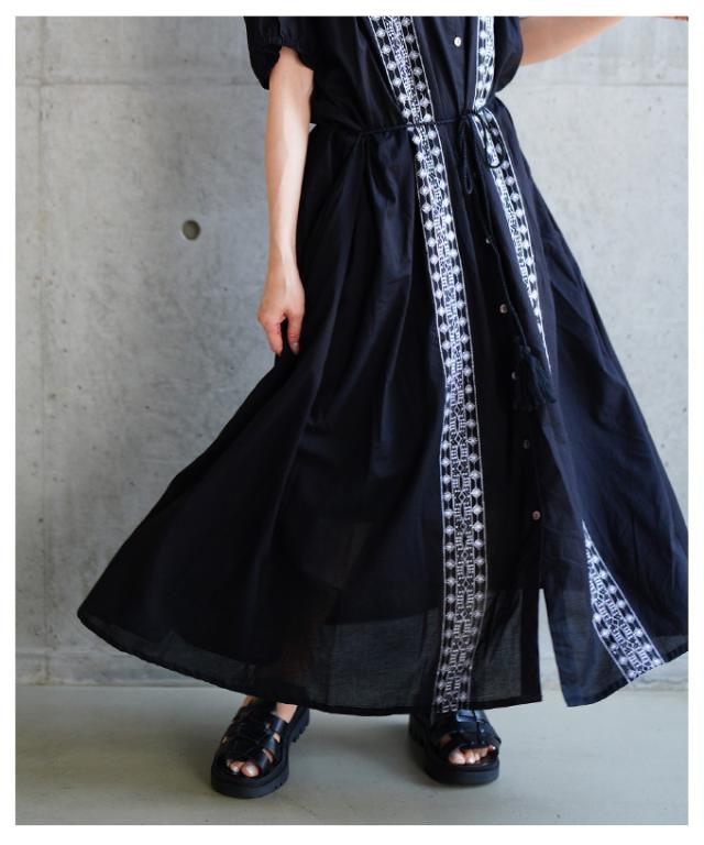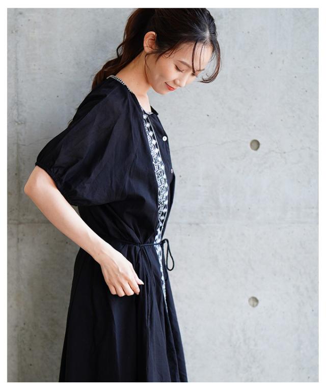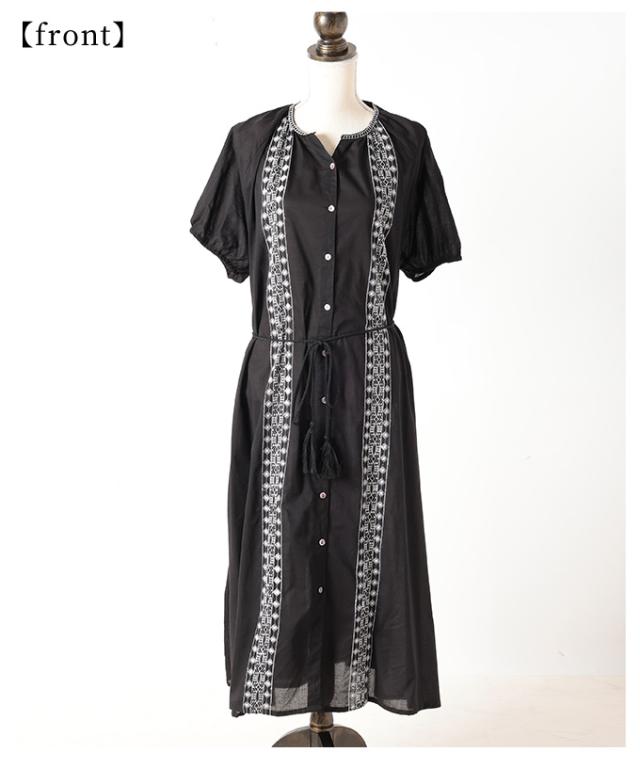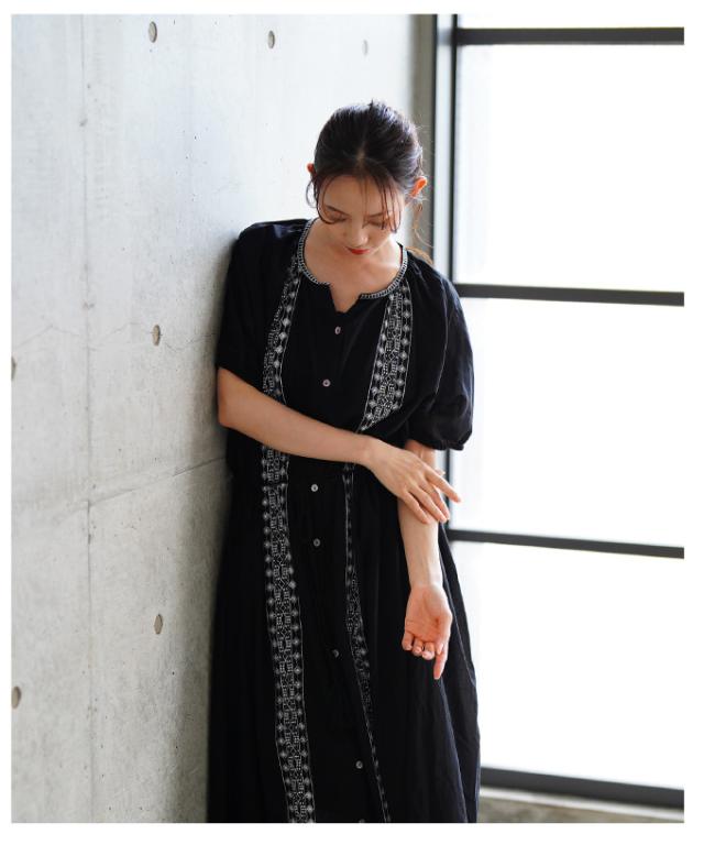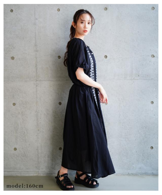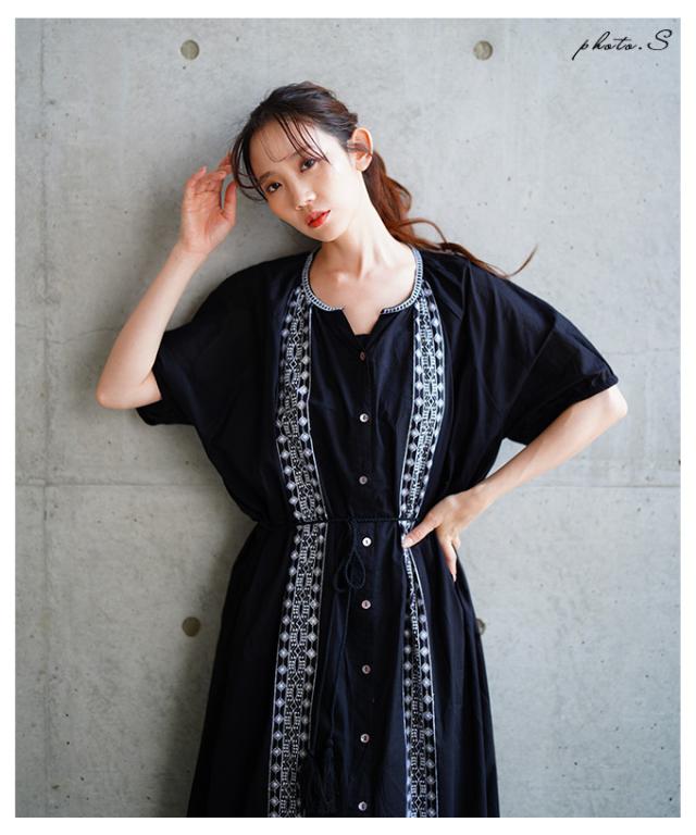 春新作 自然の温もりを感じるエスニック刺繍のインド綿ワンピース レディース ファッション ワンピース ブラック 黒 夏 夏服 大人可愛い 20代 30代 40代 レディースファッション カジュアル 体型カバー おしゃれ きれいめ ママ サワアラモード sawaalamode alkt-24mi7
