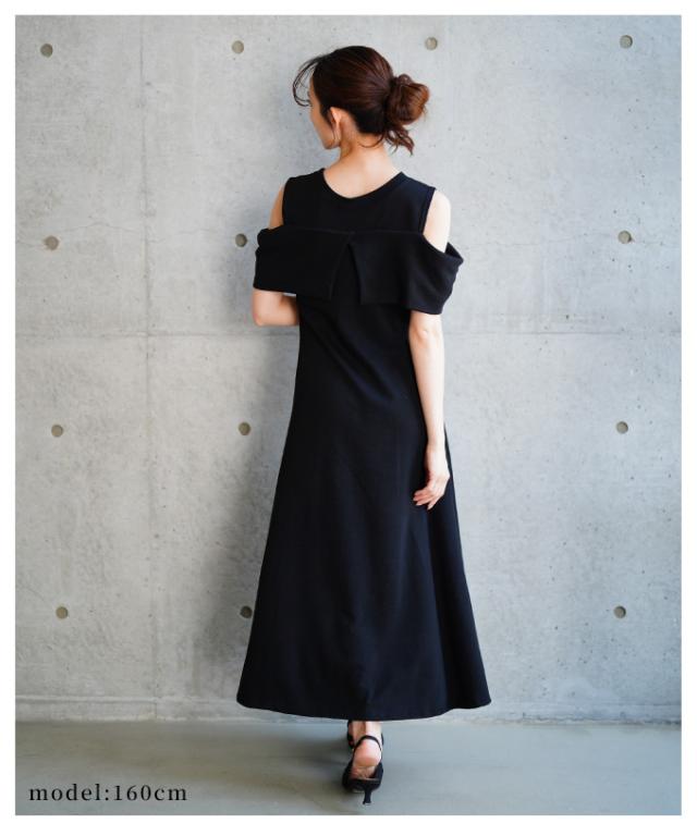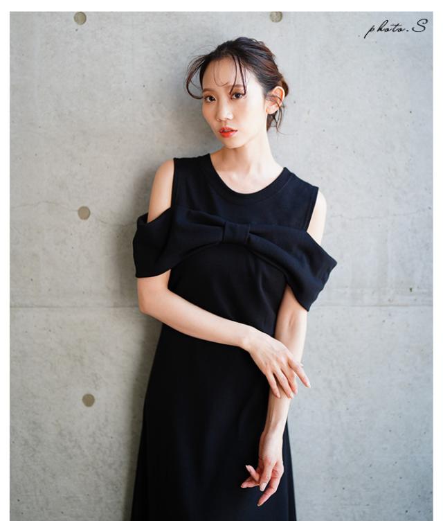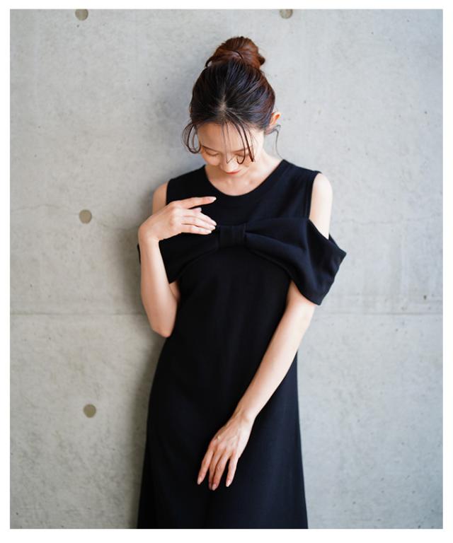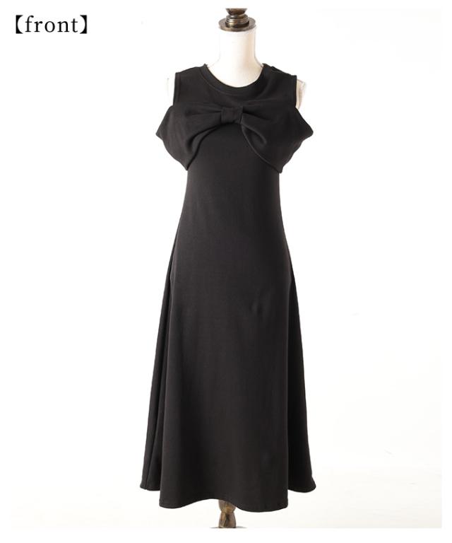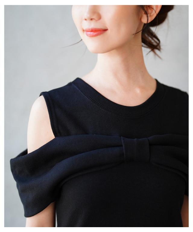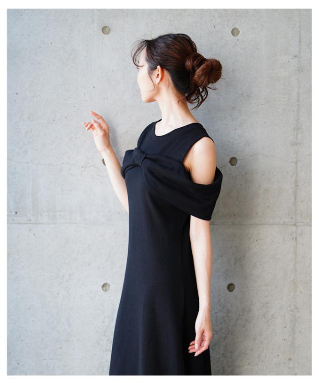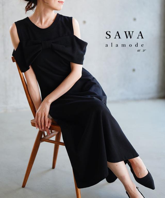 春新作 大人の肌見せに魅了するショルダーリボンフレアワンピース レディース ファッション ワンピース ドレス ブラック 夏服 大人可愛い 20代 30代 40代 レディースファッション カジュアル 体型カバー おしゃれ きれいめ ママ サワアラモード sawaalamode aljun-981s