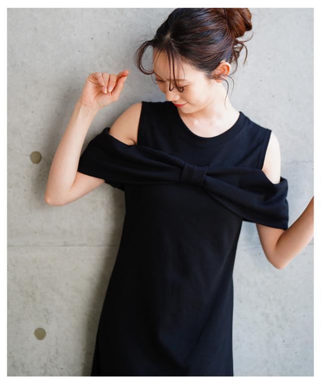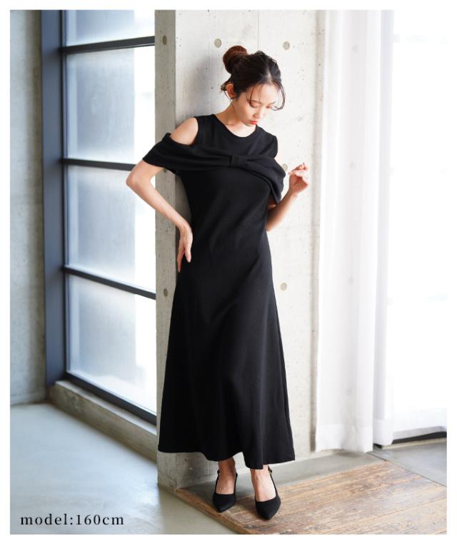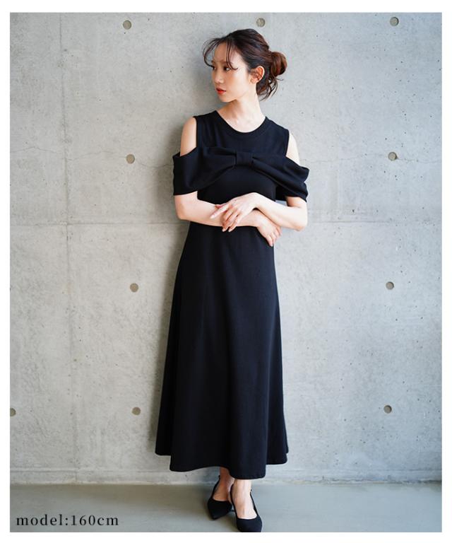 商品名: 大人の肌見せショルダーリボンフレアワンピース