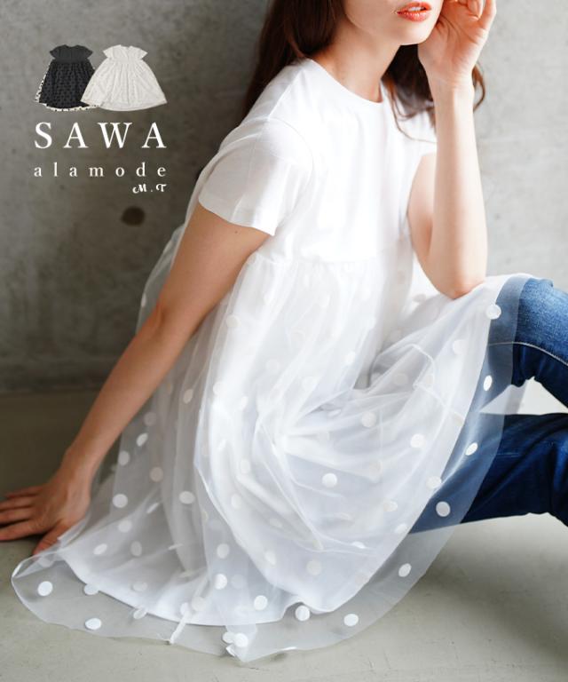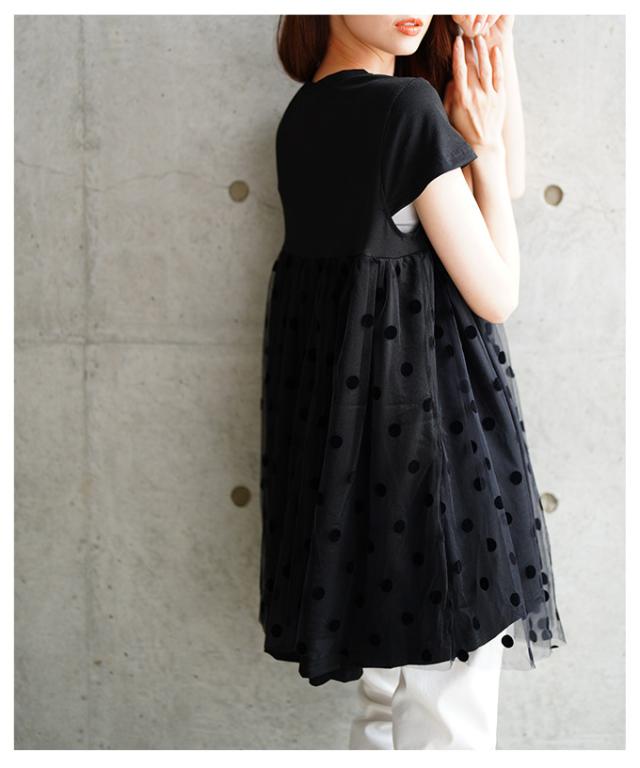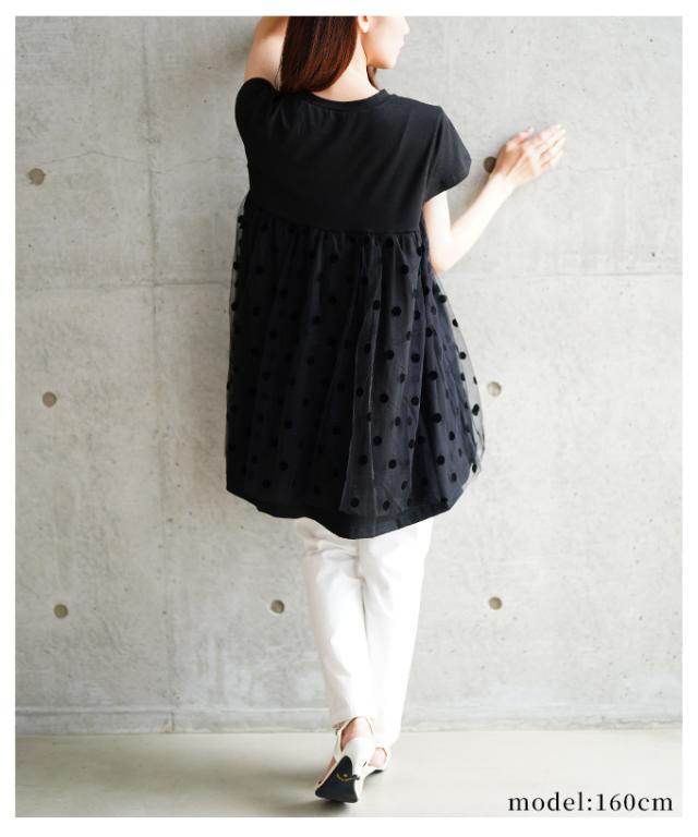 春新作 可愛いをつくる異素材チュールドットフレア切り替えチュニック レディース ファッション チュニック カットソー 異素材 ドット チュール フレア 黒 白 30代 40代 50代 60代 サワアラモード sawaalamode otona 大人 cawaii 可愛い 洋服 かわいい服 mode-9953