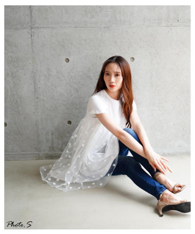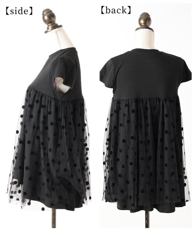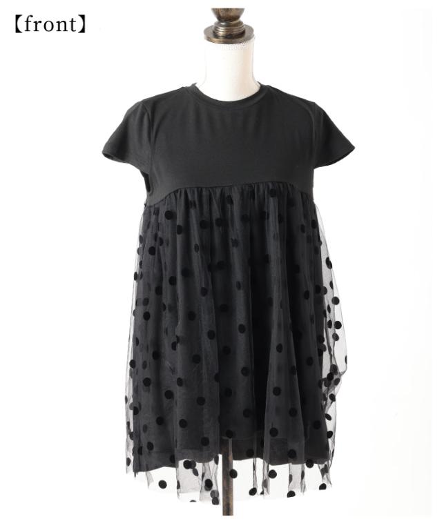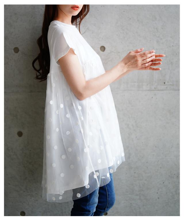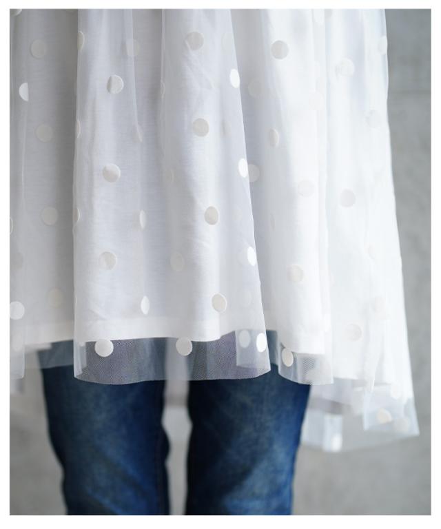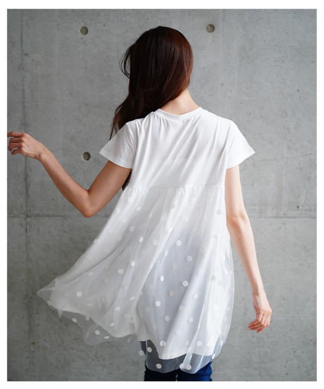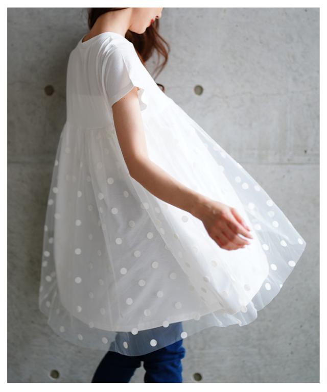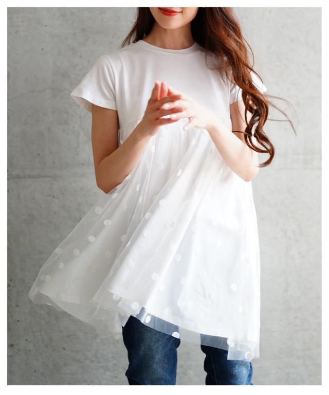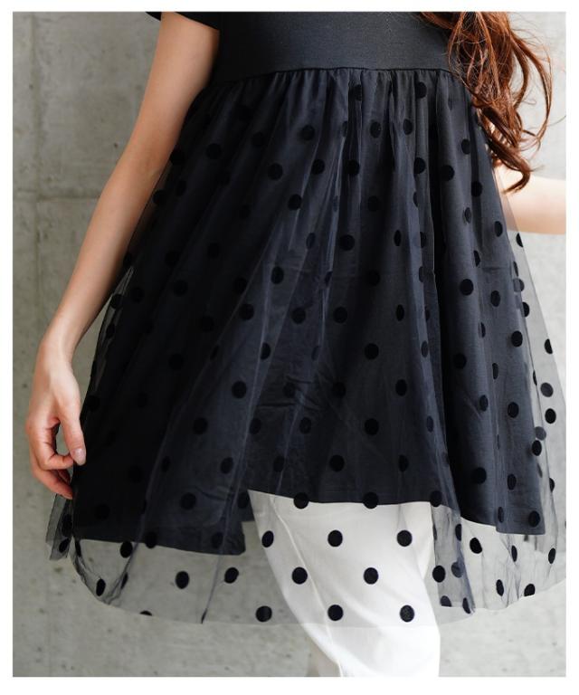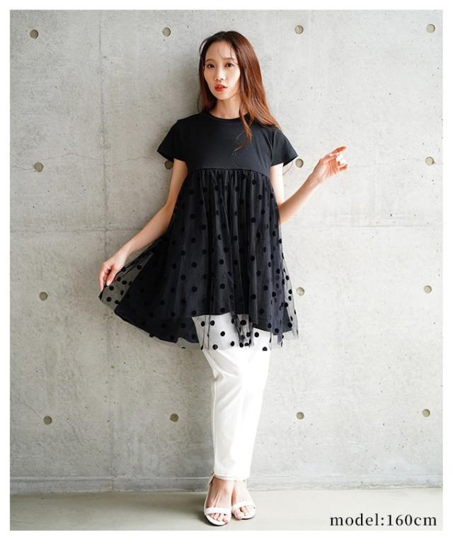 商品名: 異素材チュールドットフレア切り替えチュニック