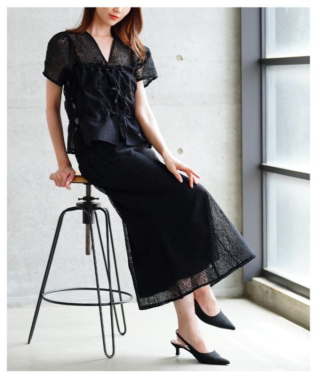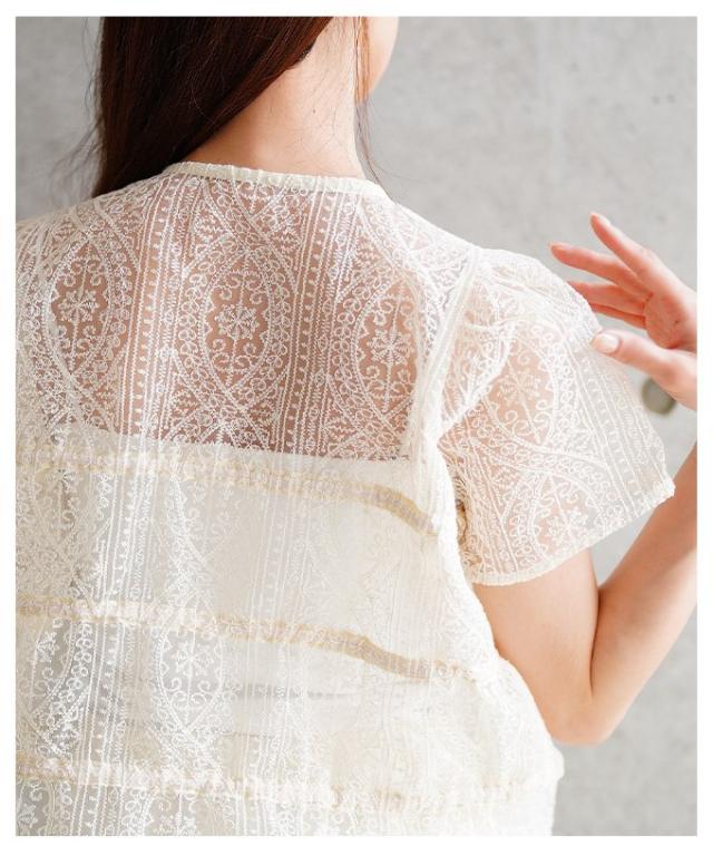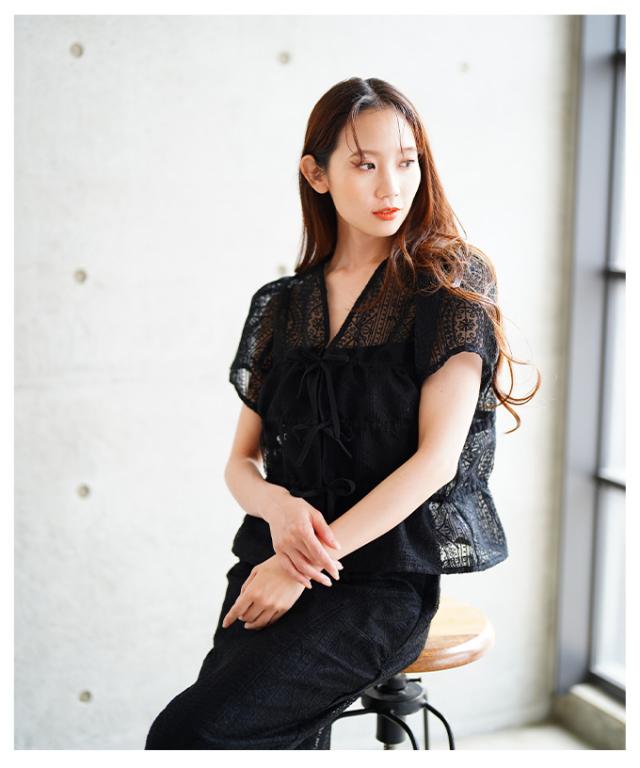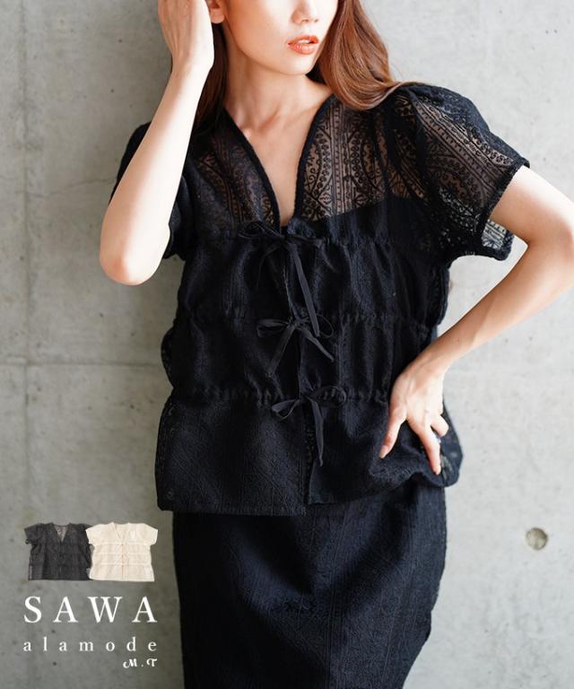 春新作 繊細レースでレイヤードを盛り上げるシャーリングブラウス レディース ファッション トップス ブラウス レース リボン レイヤード 半袖 羽織り 黒 白 30代 40代 50代 60代 サワアラモード sawaalamode otona 大人 cawaii 可愛い 洋服 かわいい服 aldt-481r3861
