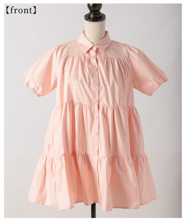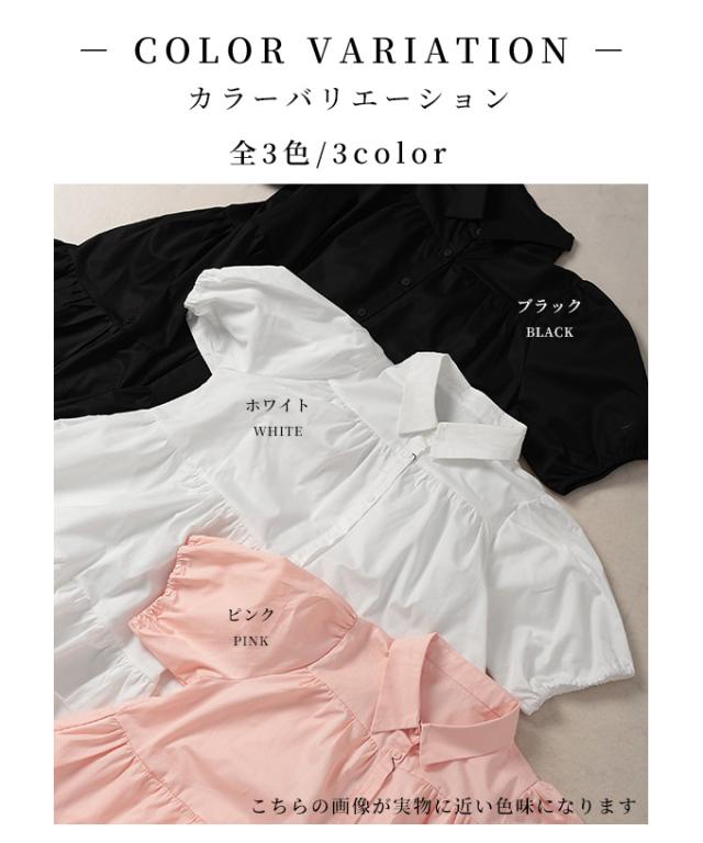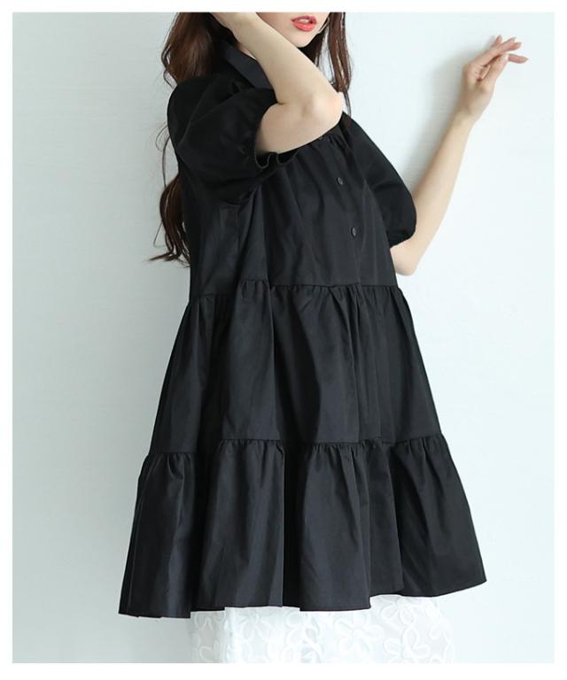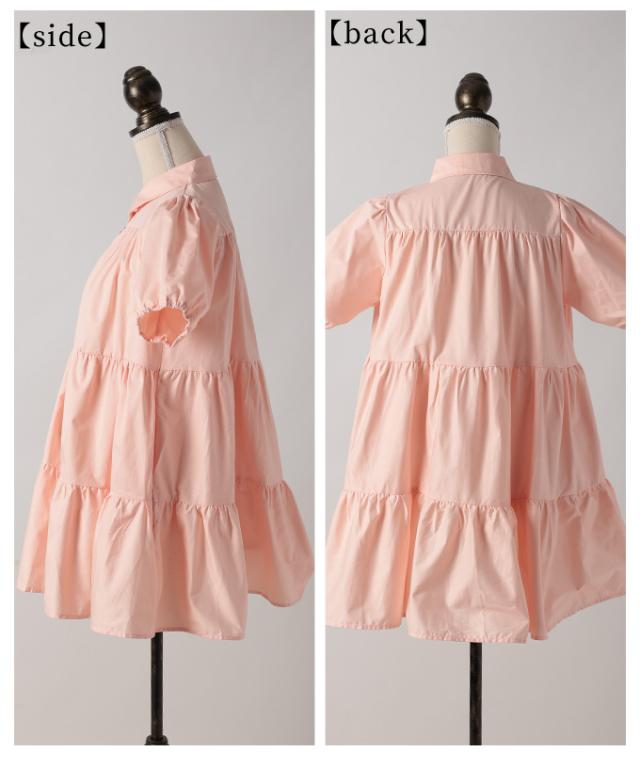 特徴: ティアード フレア パフスリーブ レギュラーカラー ボタン ポケット コットン