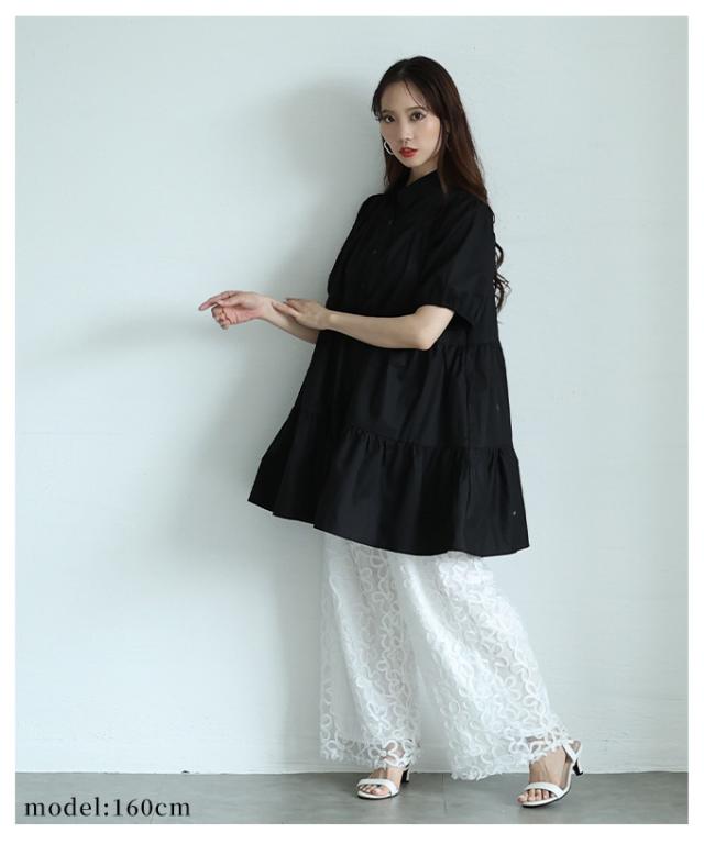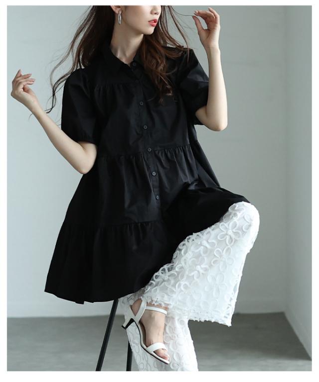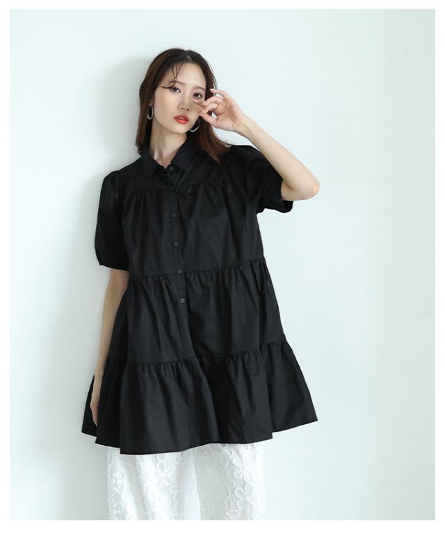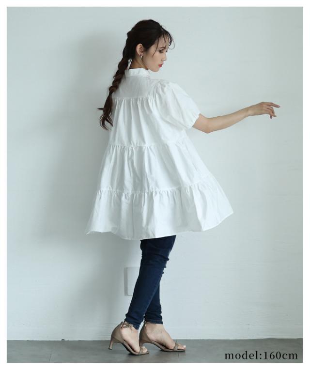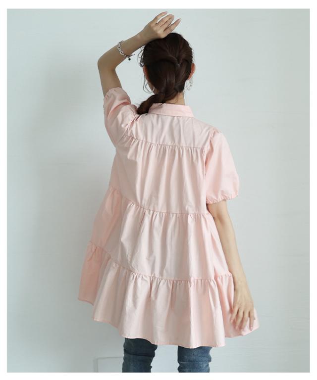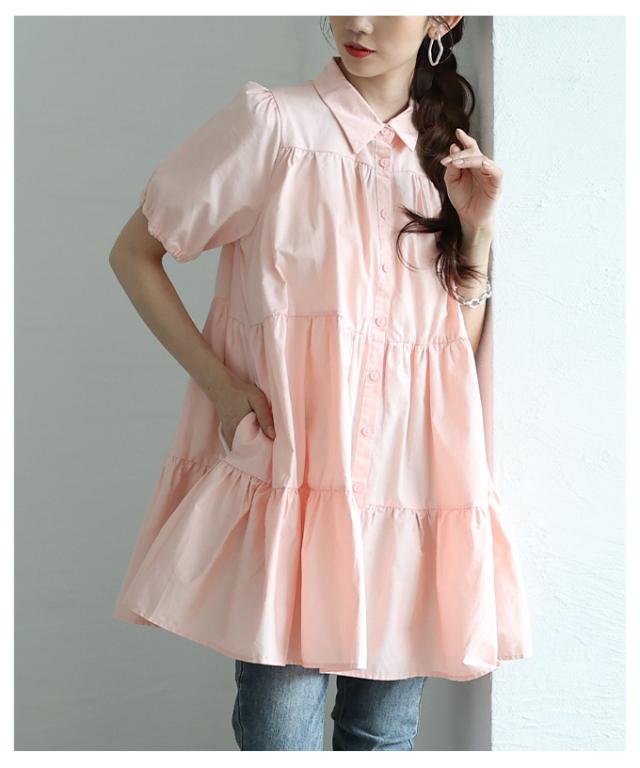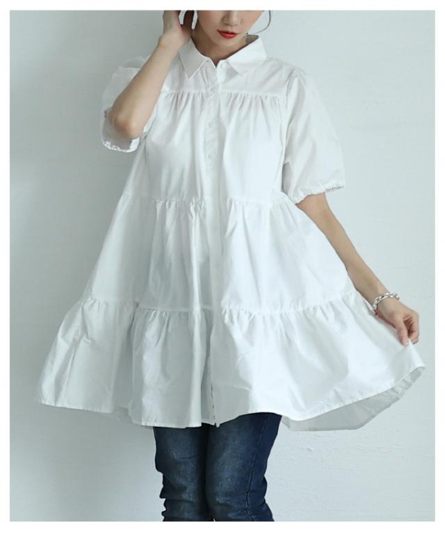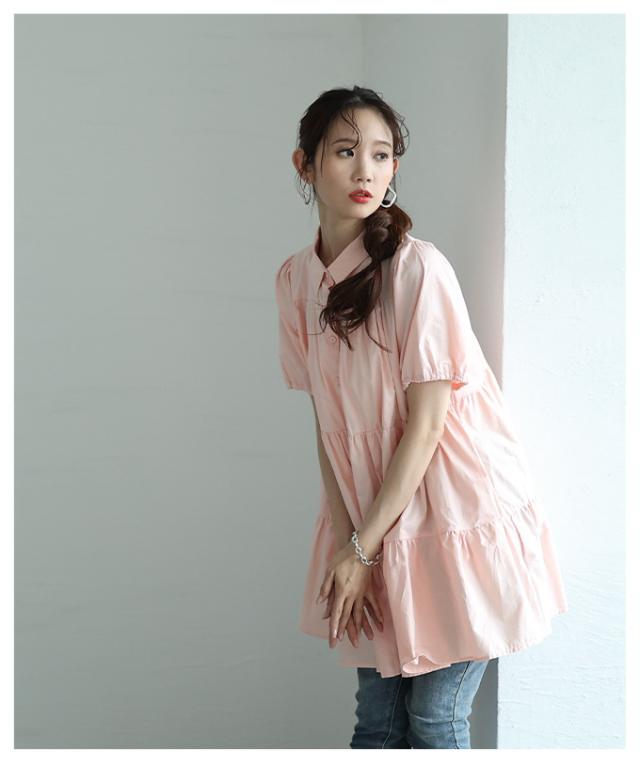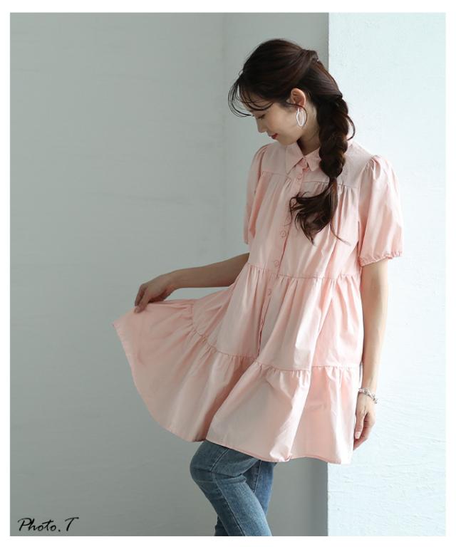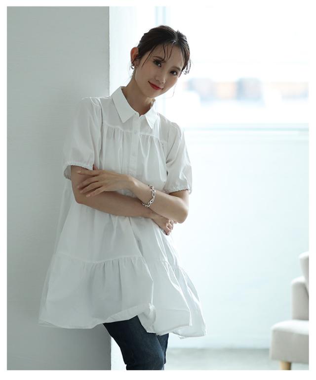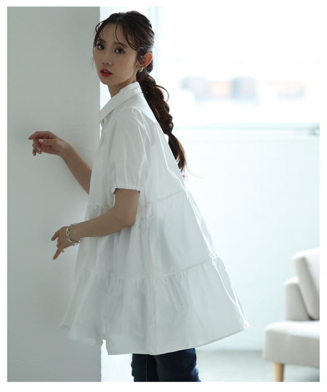 春新作 甘いシルエットに惹かれるティアードシャツチュニック レディース ファッション チュニック シャツ ブラウス ティアード 半袖 フレア シンプル 30代 40代 50代 60代 サワアラモード sawaalamode otona 大人 cawaii 可愛い 洋服 かわいい服 mode-9937
