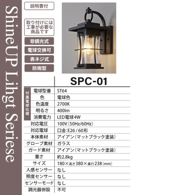 玄関灯 ポーチライト 防雨 外灯 玄関 LED 照明 門柱灯 庭用 壁掛けライト ブラケットライト おしゃれ PSEマーク取得 SPC-01
