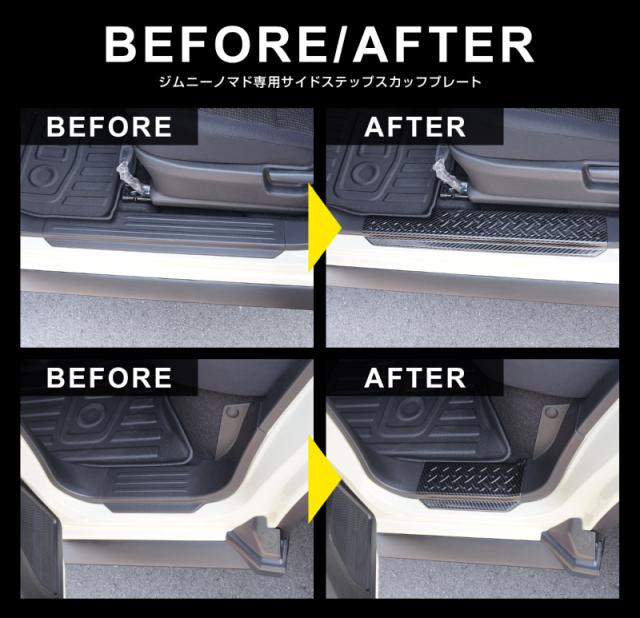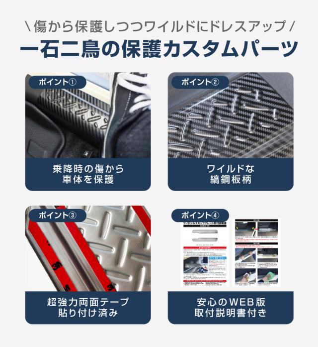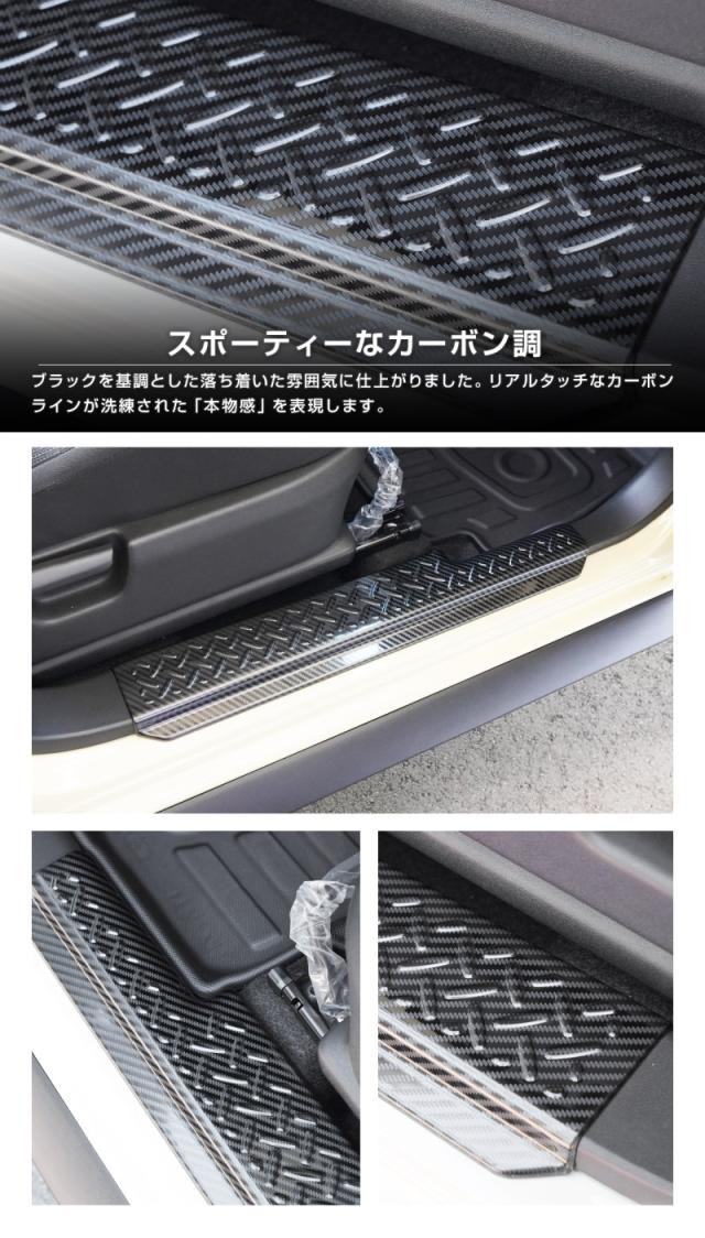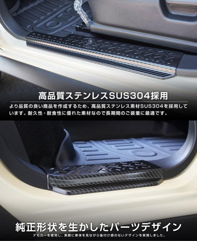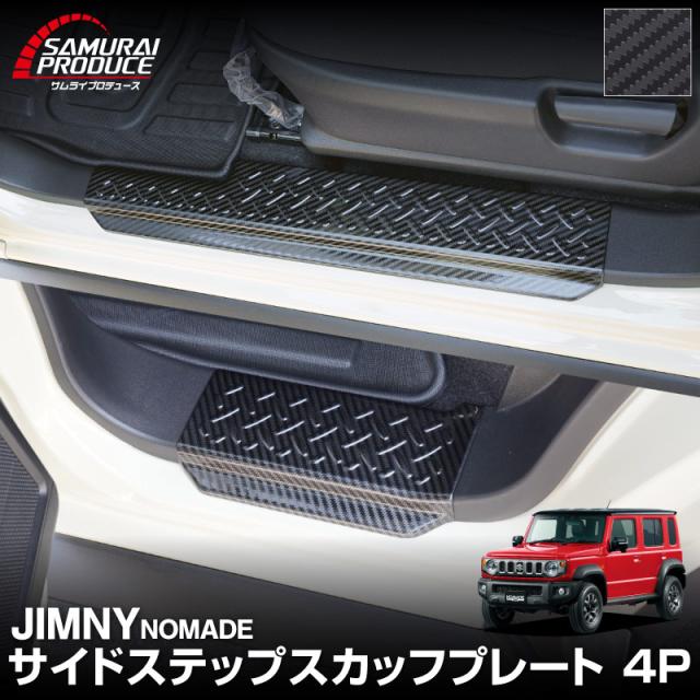 【予約/1月20日頃入荷予定】ジムニー ノマド JC74W 専用 サイドステップ スカッフプレート 縞鋼板柄 4P カーボン調 保護 内装 カスタム パーツ アクセサリー