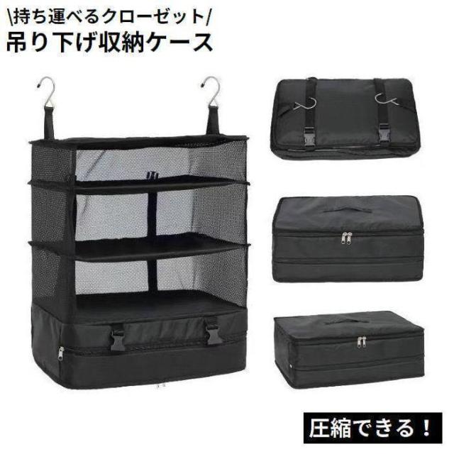 圧縮バッグ トラベルポーチ 衣類収納ラック 3段 吊り下げ 掛ける 折りたたみ 旅行 出張 大容量 軽量 防水 手提げ 持ち運び