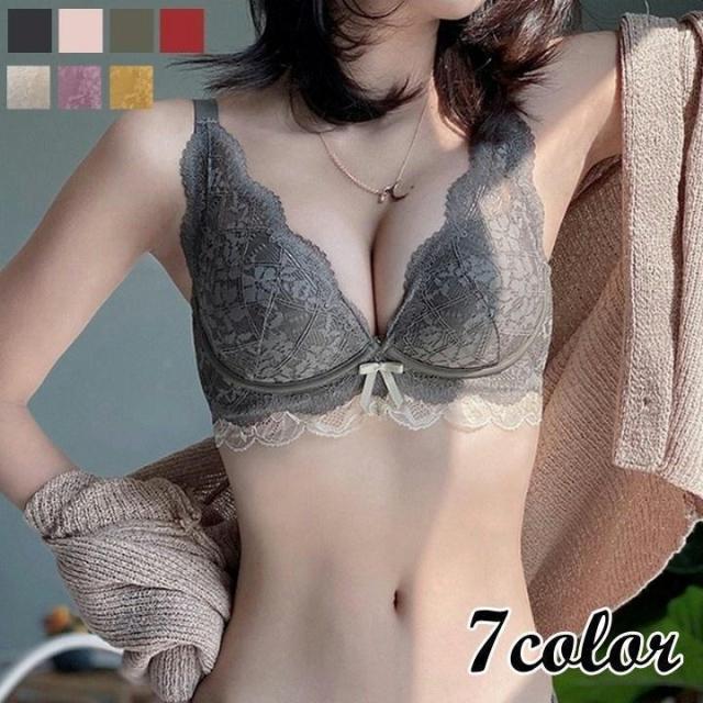 ブラジャー 3/4カップ ノンワイヤーブラ 総レース 下着 女性用 レディース 婦人 脇高 背中すっきり 花柄レース リボン おしゃれ かわいい デイ