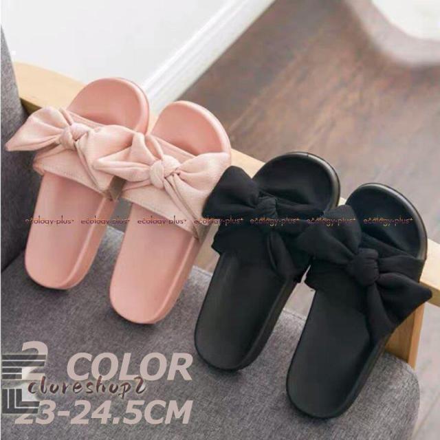 スリッパ レディース おしゃれ かわいい サンダル ぺたんこ フラット リボン 前あき 幅広 ルームシューズ 可愛い ベランダ