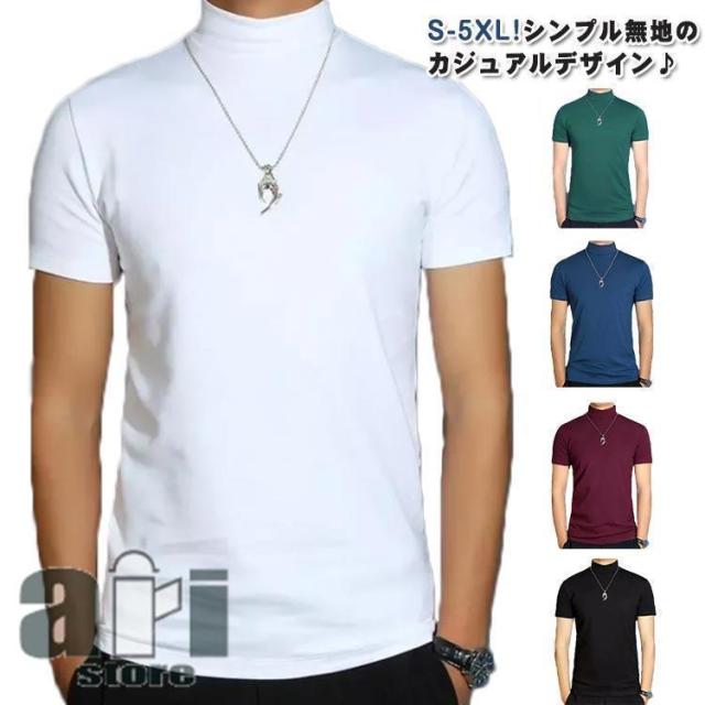 ストレッチ tシャツ メンズtシャツ 半袖 半袖 ゴルフ S メンズ ハイネック 無地 ハイネック モックネックシャツ モックネック ゴルフ ス