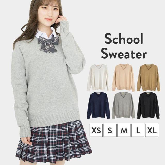 スクールセーター 女子 秋冬 制服 中学生 高校生 学生服 セーター 無地 綿100% vネック スクール ニット 洗える 学生 通学 レディース 人気 可愛い紺 紺色